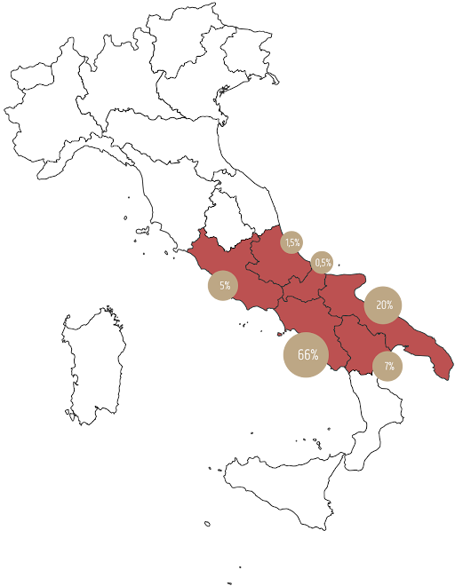 | Regione | Produttori | Ettari | % prod. |